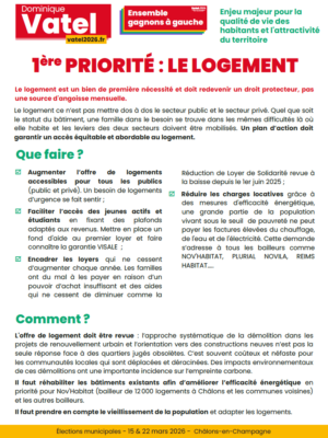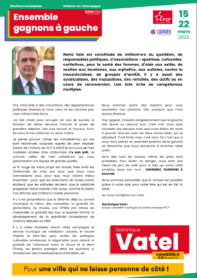 J’ai été chargé de conduire la liste « Ensemble gagnons à gauche » pour que Châlons ne laisse personne au bord du chemin et pour que Châlons construise son avenir dès maintenant.