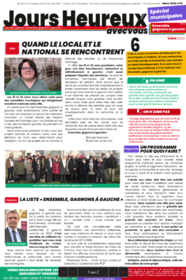 Nous pouvons réussir le défi également – sans fausse modestie – grâce à mon expérience reconnue, acquise initialement aux côtés de Jean Reyssier et Bernard Barberousse. Ils ont prouvé combien nous savons gérer nos communes. Nous pourrons aussi compter sur la qualité de nos colistiers. Ils embrassent de multiples compétences et passions. Enfin vous pouvez avoir confiance en nos forces militantes qui seront indispensables pour combattre, avec vous, les mauvais coups à craindre des politiques nationales.